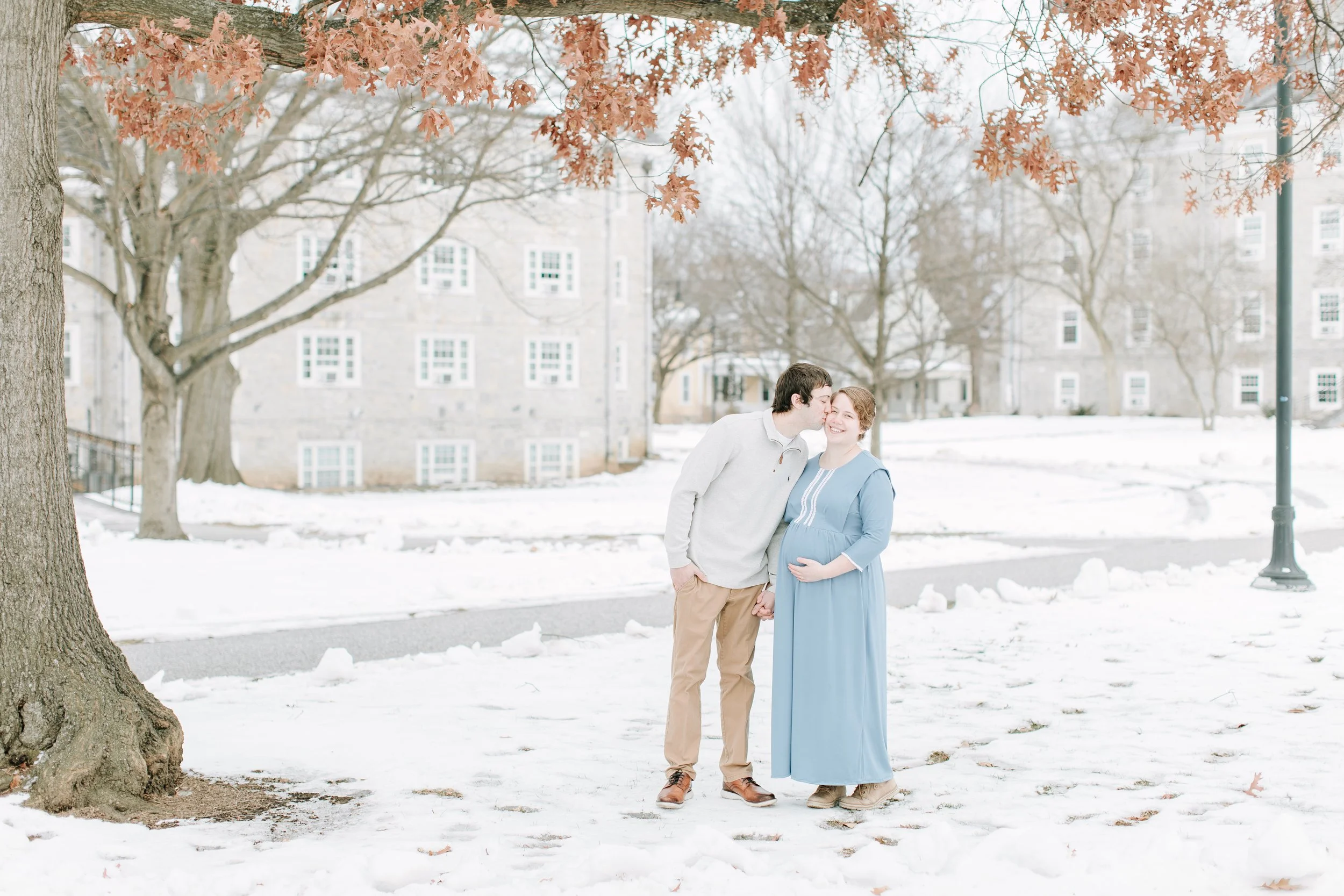 Of winter on the campus and soft blues. Tiff is a photographer and friend so it’s an honor to document this time in their lives. We drove to Carlisle to fit in a last-minute maternity session before our schedules begin to fill up again. The college campus never disappoints and the lighting this day was flawless. Can’t wait to meet you baby Wenger!